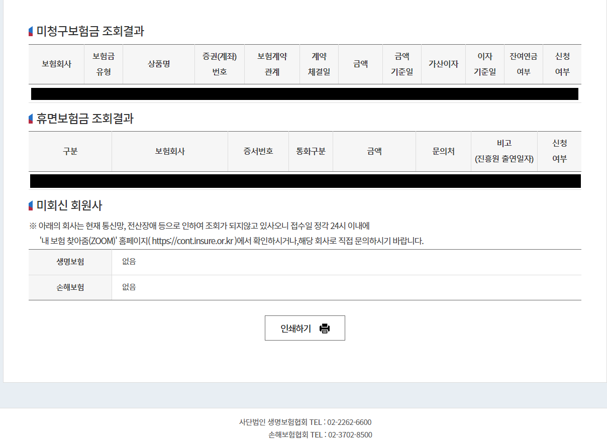 생명보험. 손해보험협회가 함께 운영하기 때문에 생명보험이든 손해보험이든 종류에 관계 없이 숨은 휴면보험금을 한번에 조회할 수 있어서 편리하고 믿을 수 있습니다.