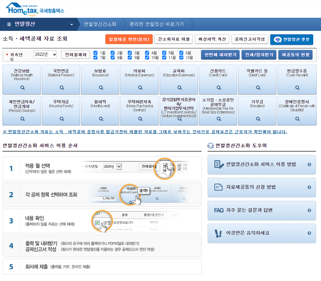 연말정산 간소화 서비스에서 받을 수 있는 공제 자료에서 안나오는 자료는 안경구입비, 기부금 등이 있습니다.